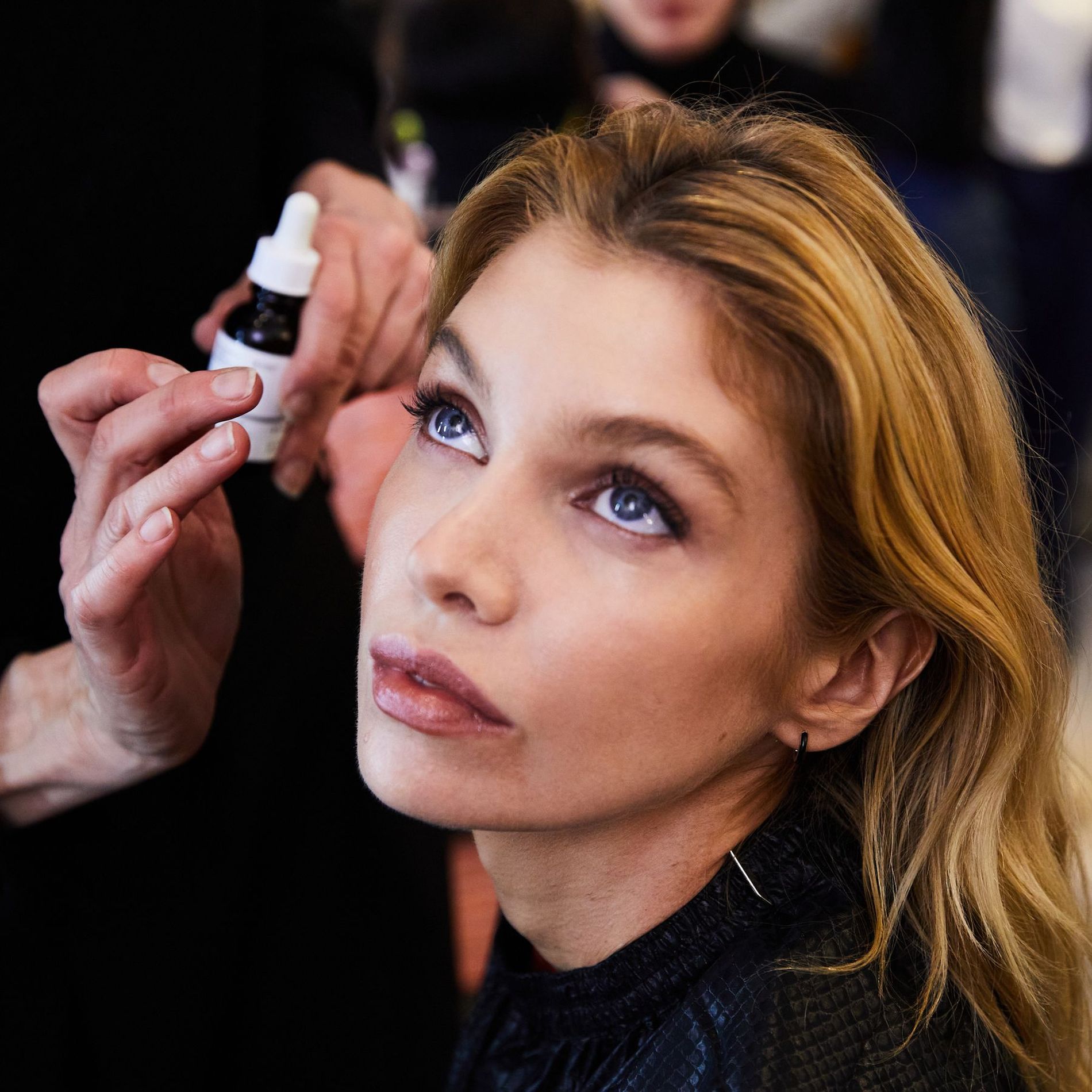 As for the step-by-step, the beauty squad backstage first applied the Soothing & Barrier support Serum to target any irritation and boost skin hydration. "For a super glowy skin finish, which radiates light, we applied the Natural Moisturising Factors + PhytoCeramides to seal everything in," says Densgø Jensen. " Finally, we tapped in the 100% Organic Cold-Pressed Rose Seed Oil to the cheekbones."