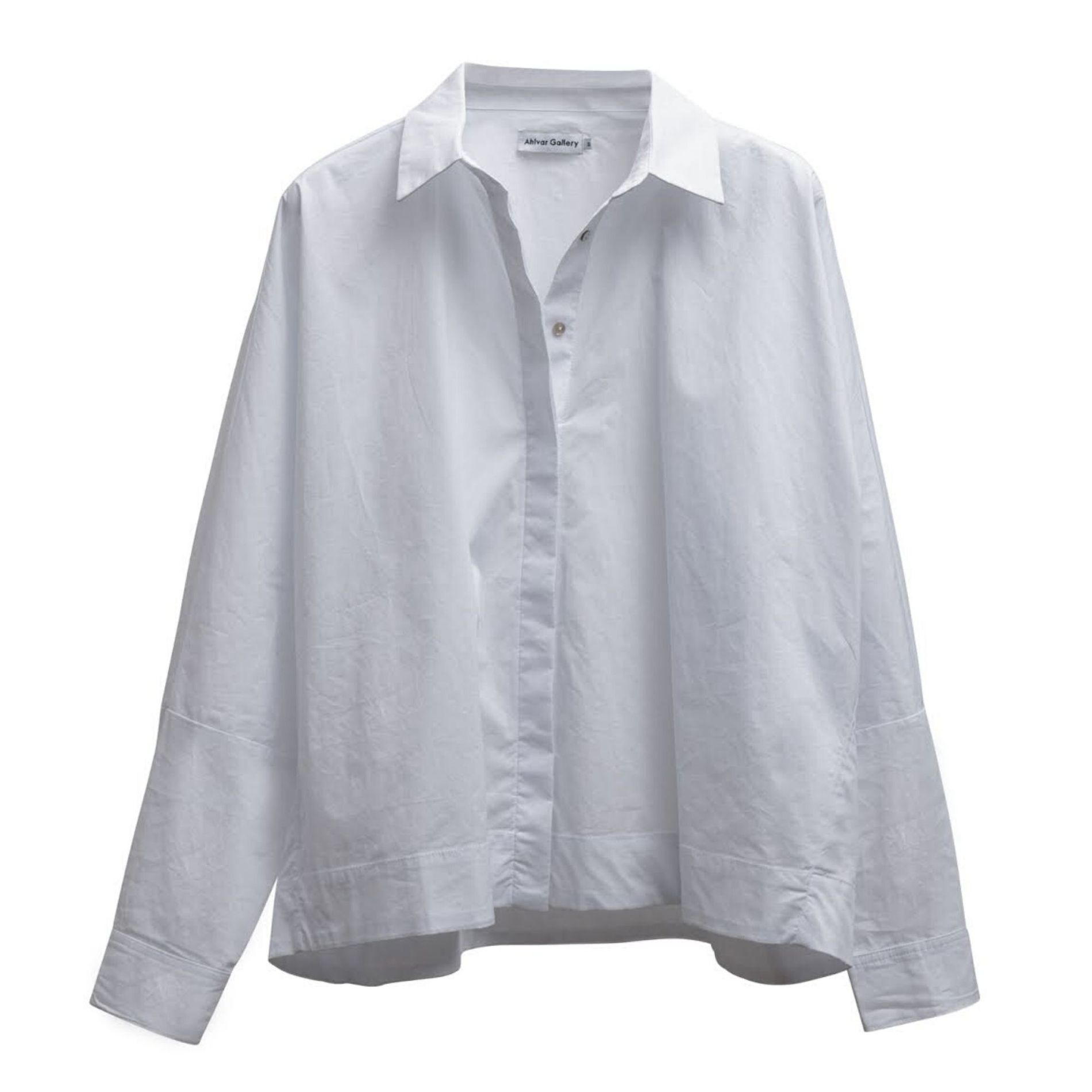The Gigi shirt is a signature style of Stockholm-based silk brand Ahlvar Gallery. Here, they've chosen a crisp cotton for their voluminous silhouette with a rounded hem. Push up the sleeves and French-tuck the front for a relaxed styling option.