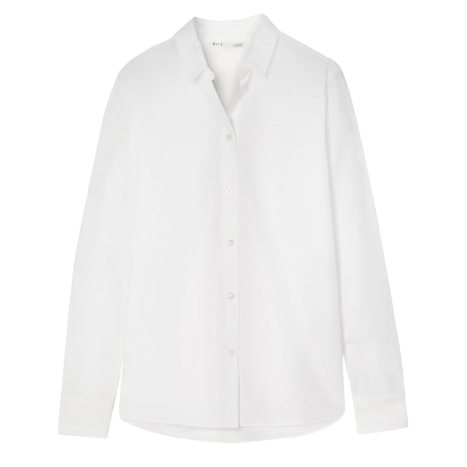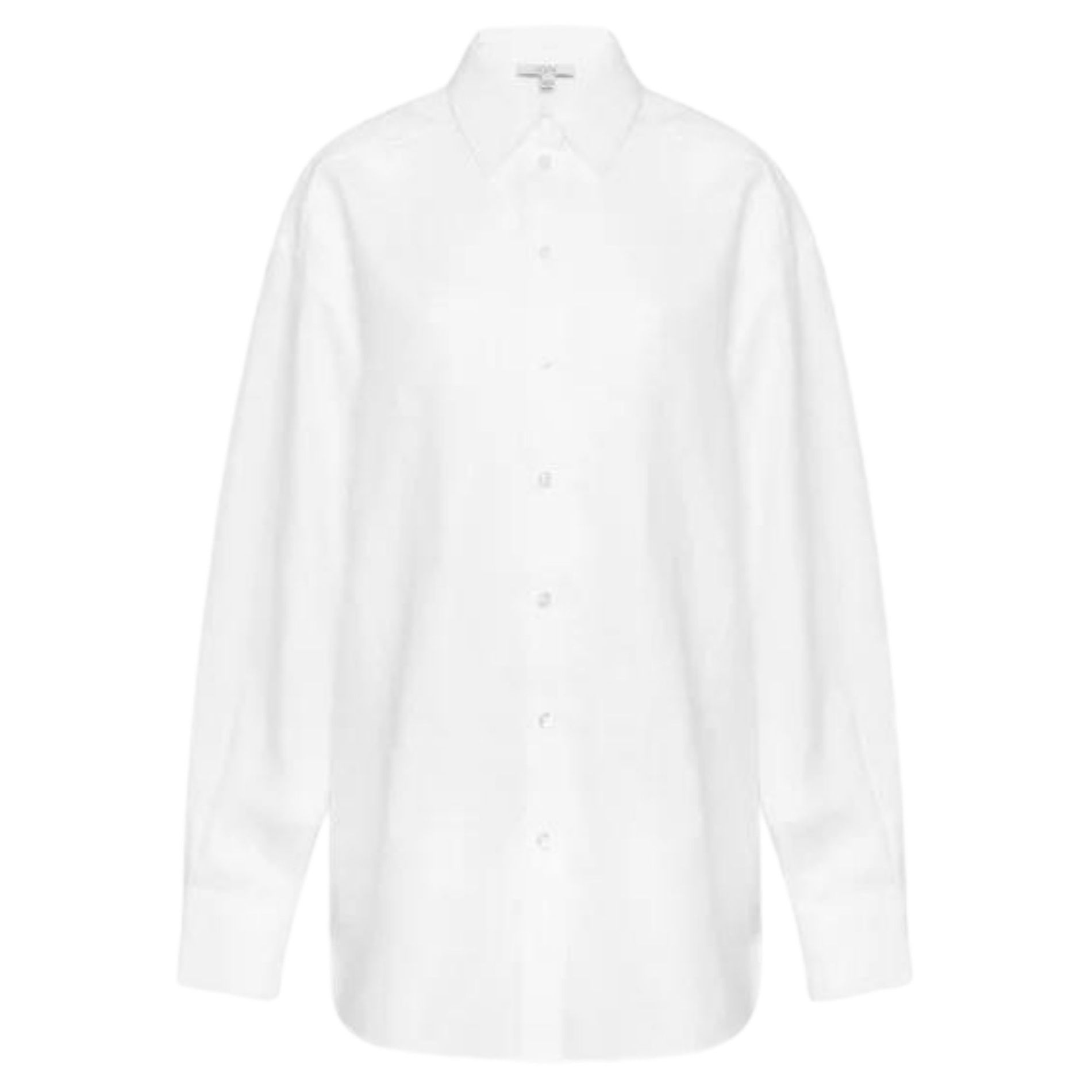 This button up shirt is a true basic. With a straight, relaxed silhouette and a curved hemline, it pairs perfectly with a statement bag and loose fit jeans. Throw on a pair of loafers and you're all set.