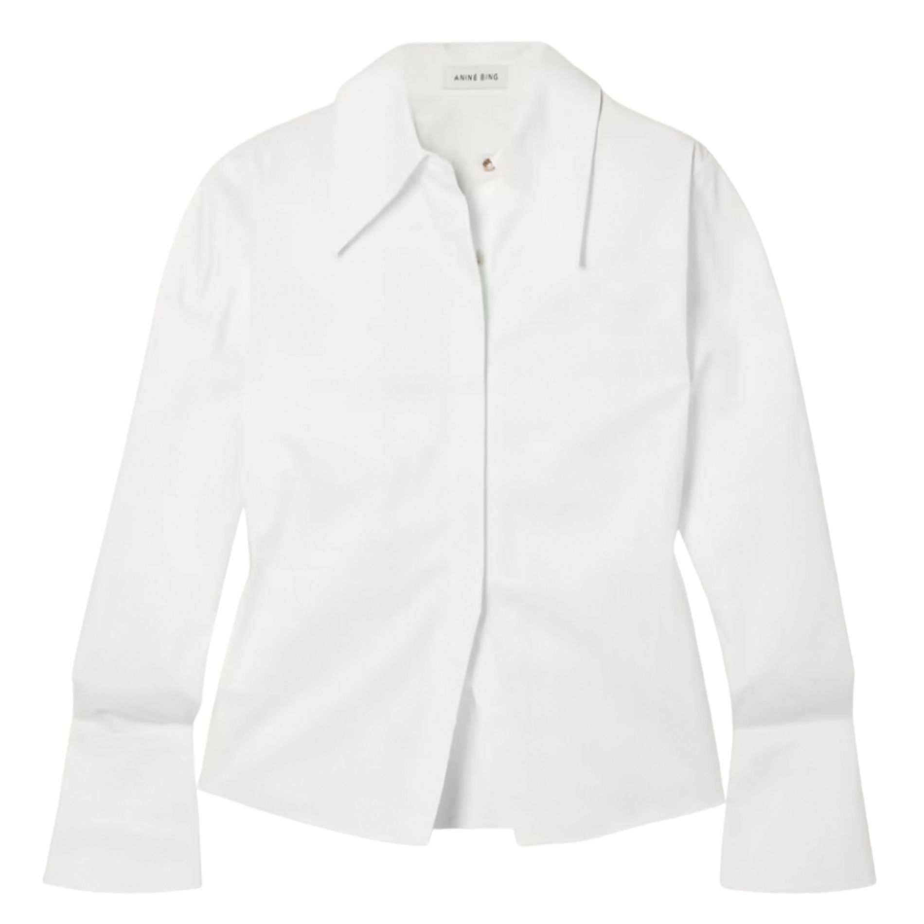A modern update to traditional shirting is the best way to describe Anine Bing's basic with some sex-appeal (the split hem shows off a subtle flash of midriff). Made from crisp cotton-poplin and with an exaggerated point collar, the bellcuffs brings us back to the '70s in the best way possible.