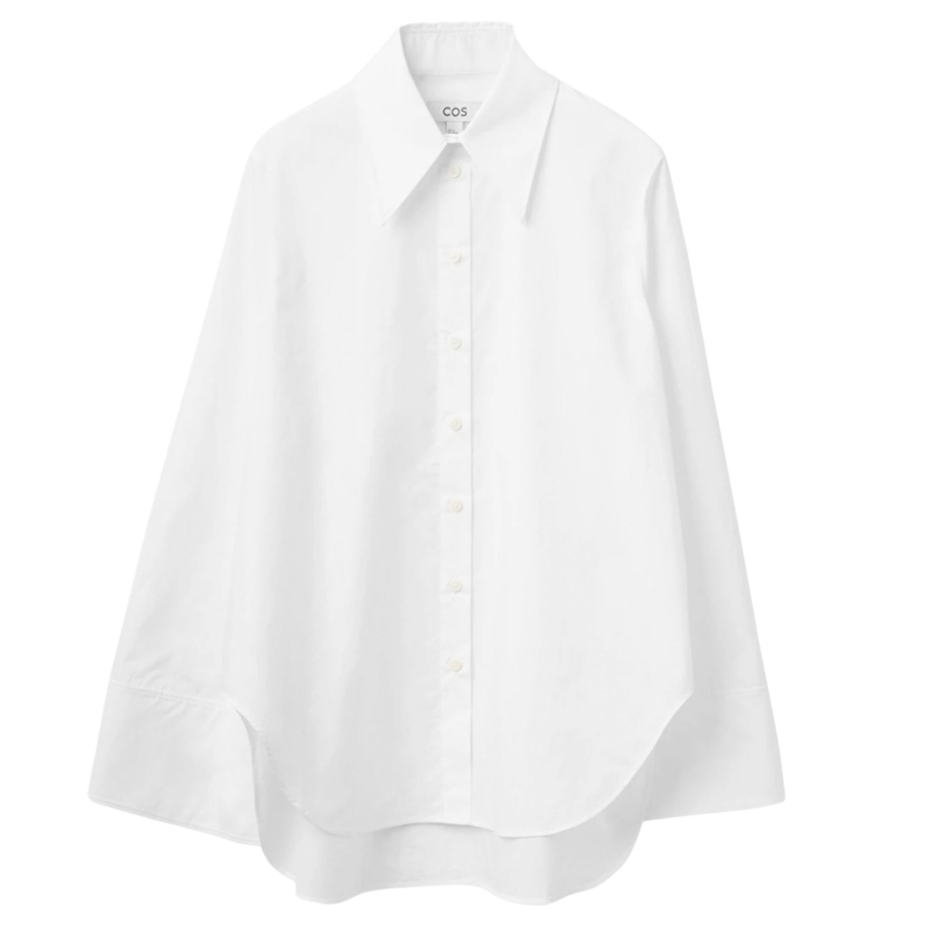 Cos contains some of our favourite takes on wardrobe staples. Elevating the basic button up, this loose-fit white shirt features wide-cut sleeves and an oversized collar.