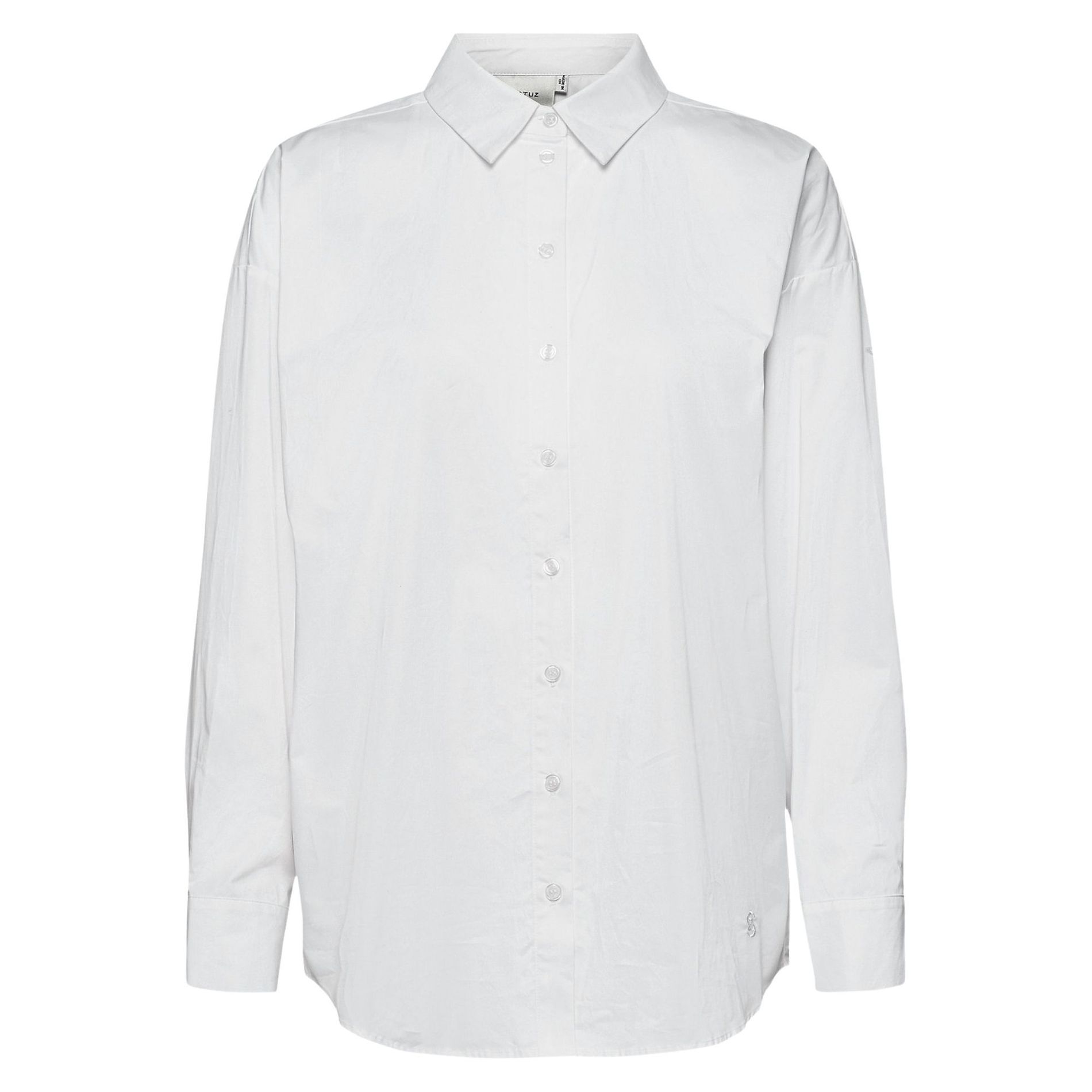 The straight cut unisex fit of this Gestuz shirt, featuring a box-pleat back and classic collar and cuff, makes it a versatile option.