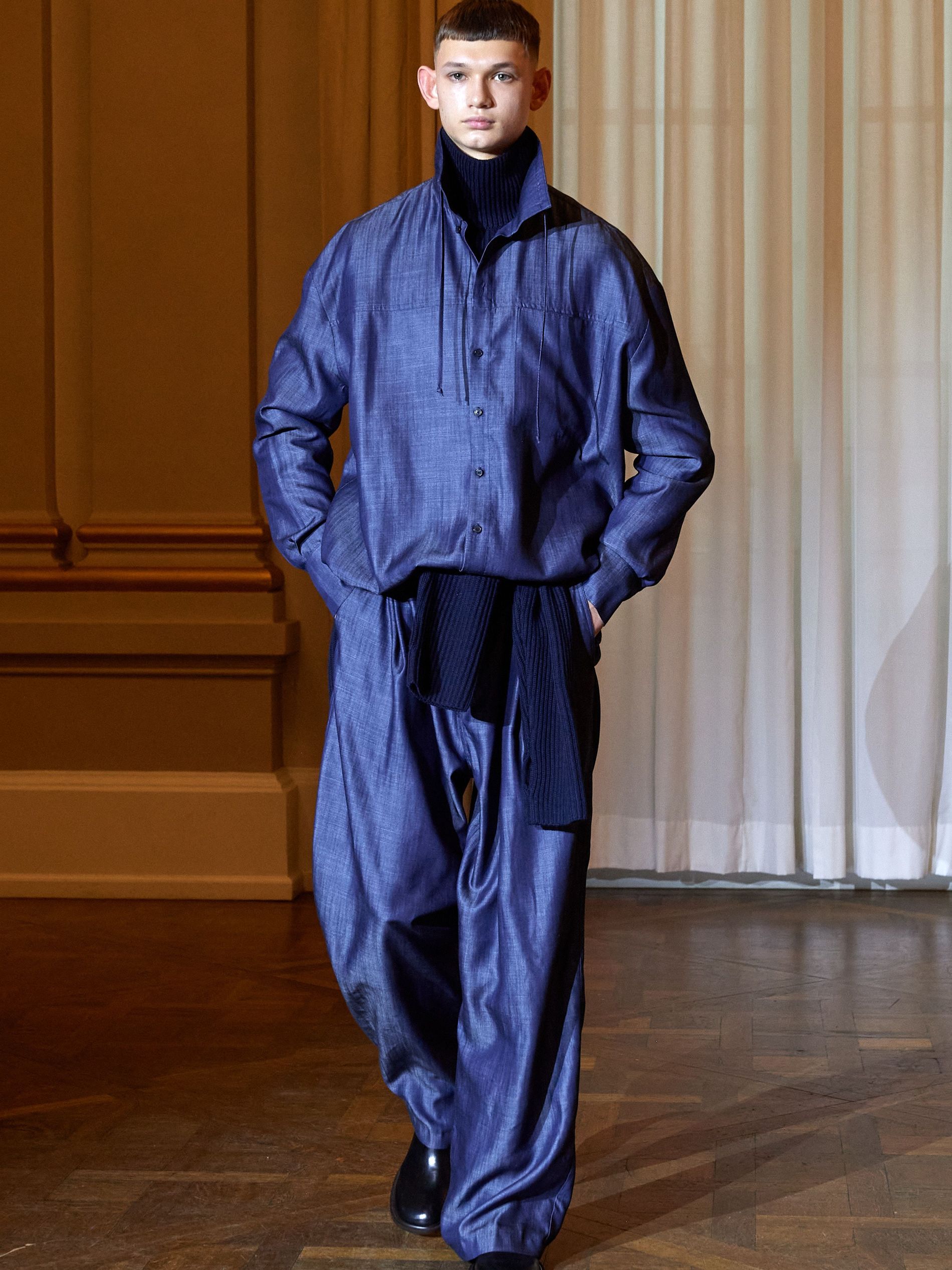 Water-resistant materials, such as oily denim and coated cotton, made it onto the mood board (as is only fitting for taking flight) bolstered by warming wool and supple leather. ‘Make do and mend’ was an underlying motto: “Every garment in AW24 is also designed to be repairable, emphasising our commitment to sustainability and enduring quality,” explains Engelgaar. “It's about taking care of clothing, cherishing it, and ensuring it can be worn for many years to come.”