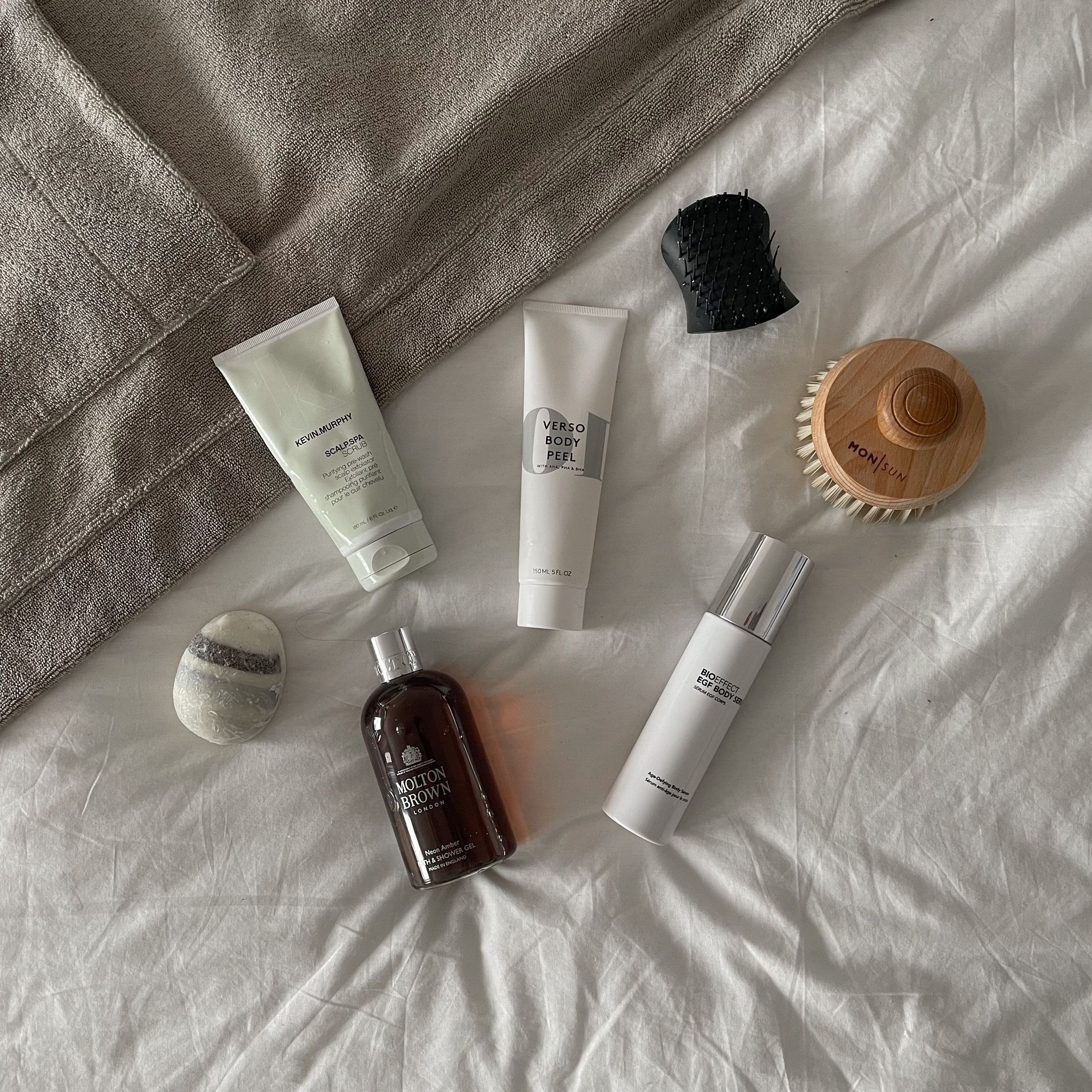 Now, writing this article I’m realising I have a very particular, set, showering order — and that usually begins with washing my hair and applying conditioner so it can properly treat the hair while I get to the other things, but for illustrative purposes, I’m going to break that order and start with products and then tools that I’ve made must haves while in the running water.