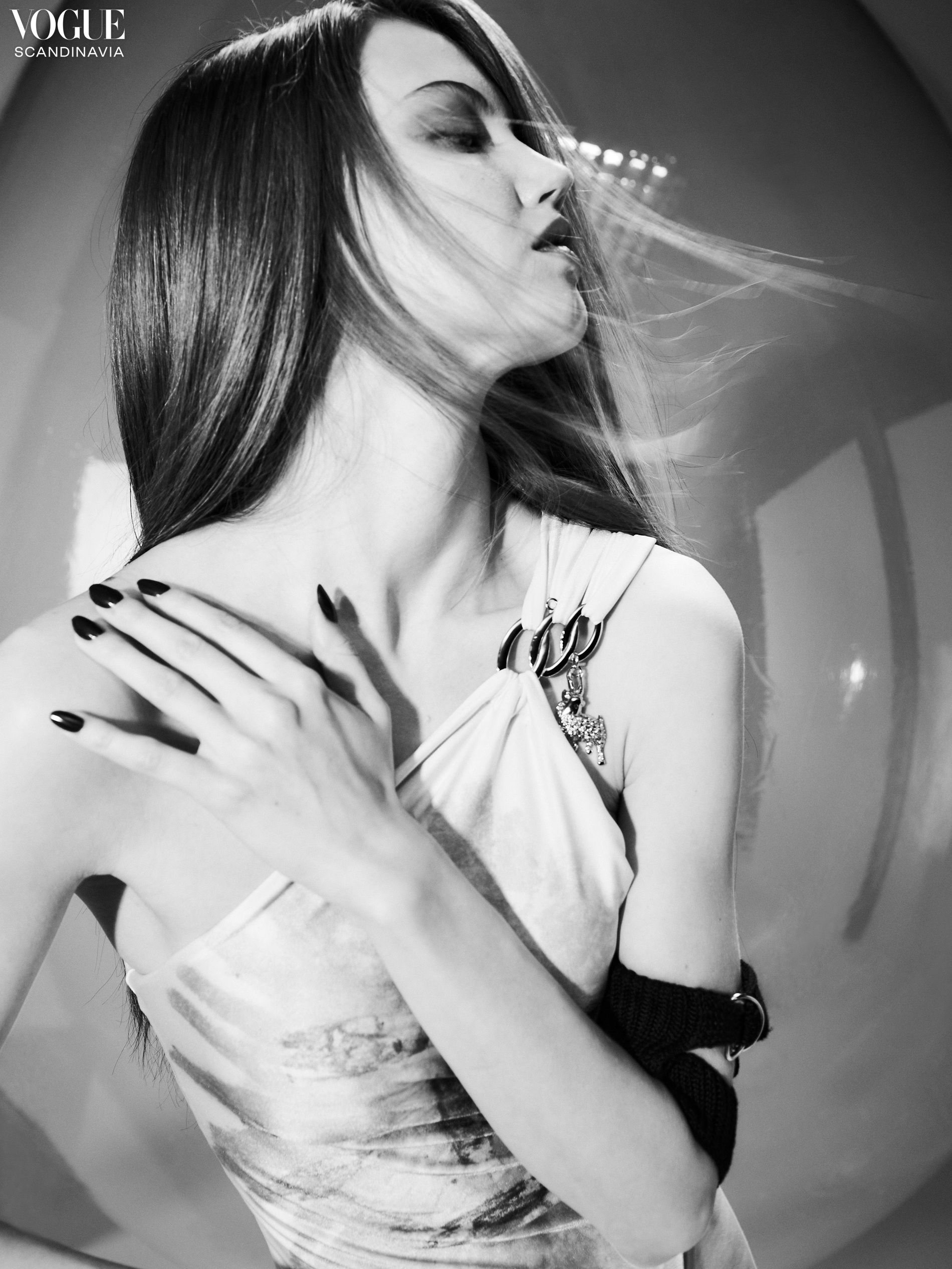 Embellished swimsuit, €310. Knitted arm cuffs, price on request. Both Chopova Lowena. Photo: Josie Hall