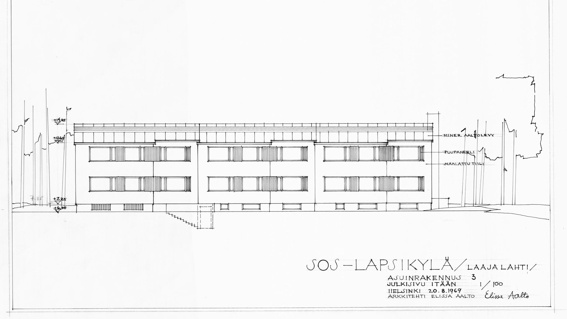 SOS Children’s Village in Tapiola, Espoo (1960–70) designed by Elissa Aalto. Photo: Drawing © Alvar Aalto Foundation.