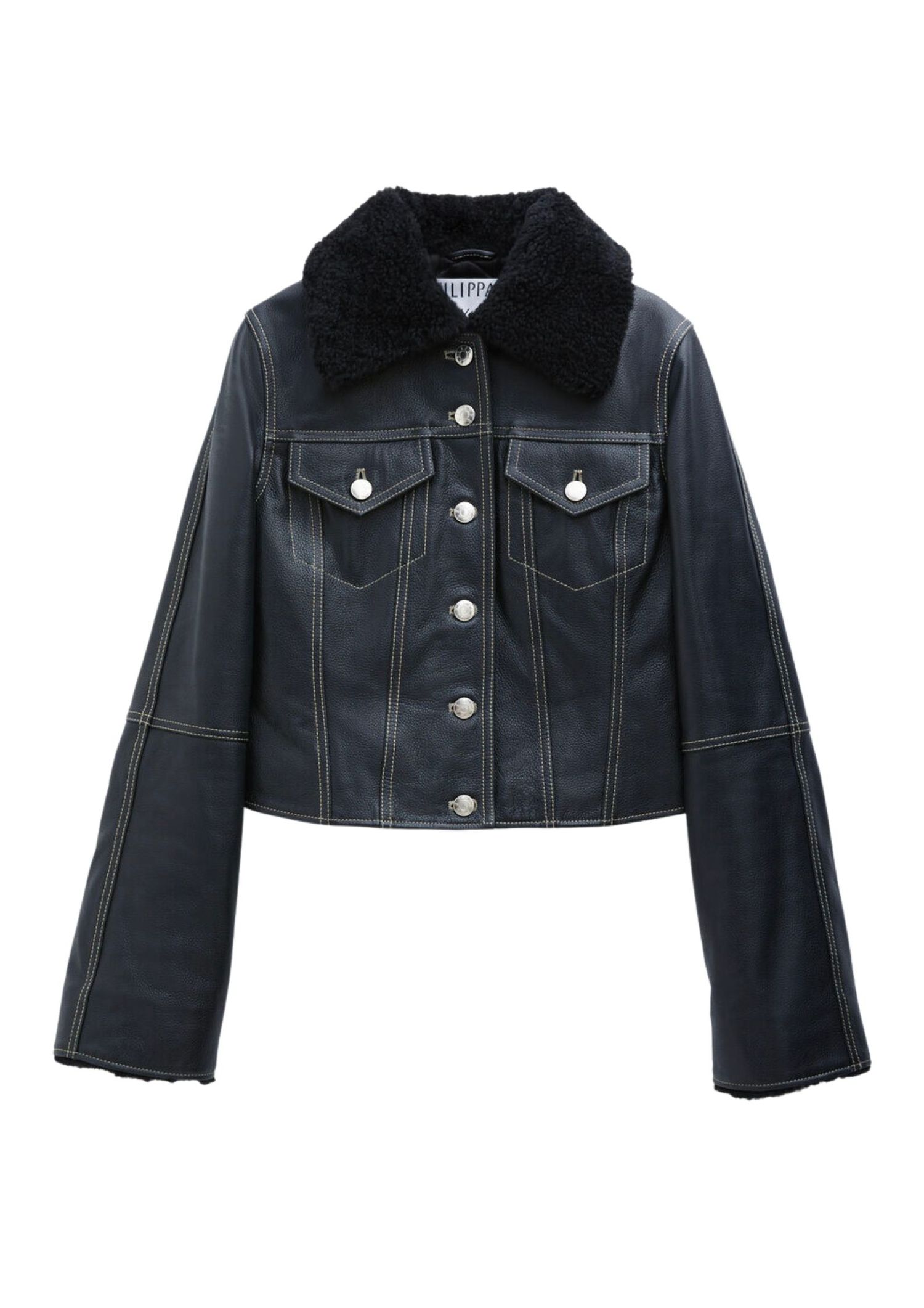 Filippa K really found the devil in the details this season, presenting this slightly cropped leather jacket featuring contrast topstitching, silver buttons and a cozy shearling collar. All without compromising the brand's multi-use minimalist aesthetics.