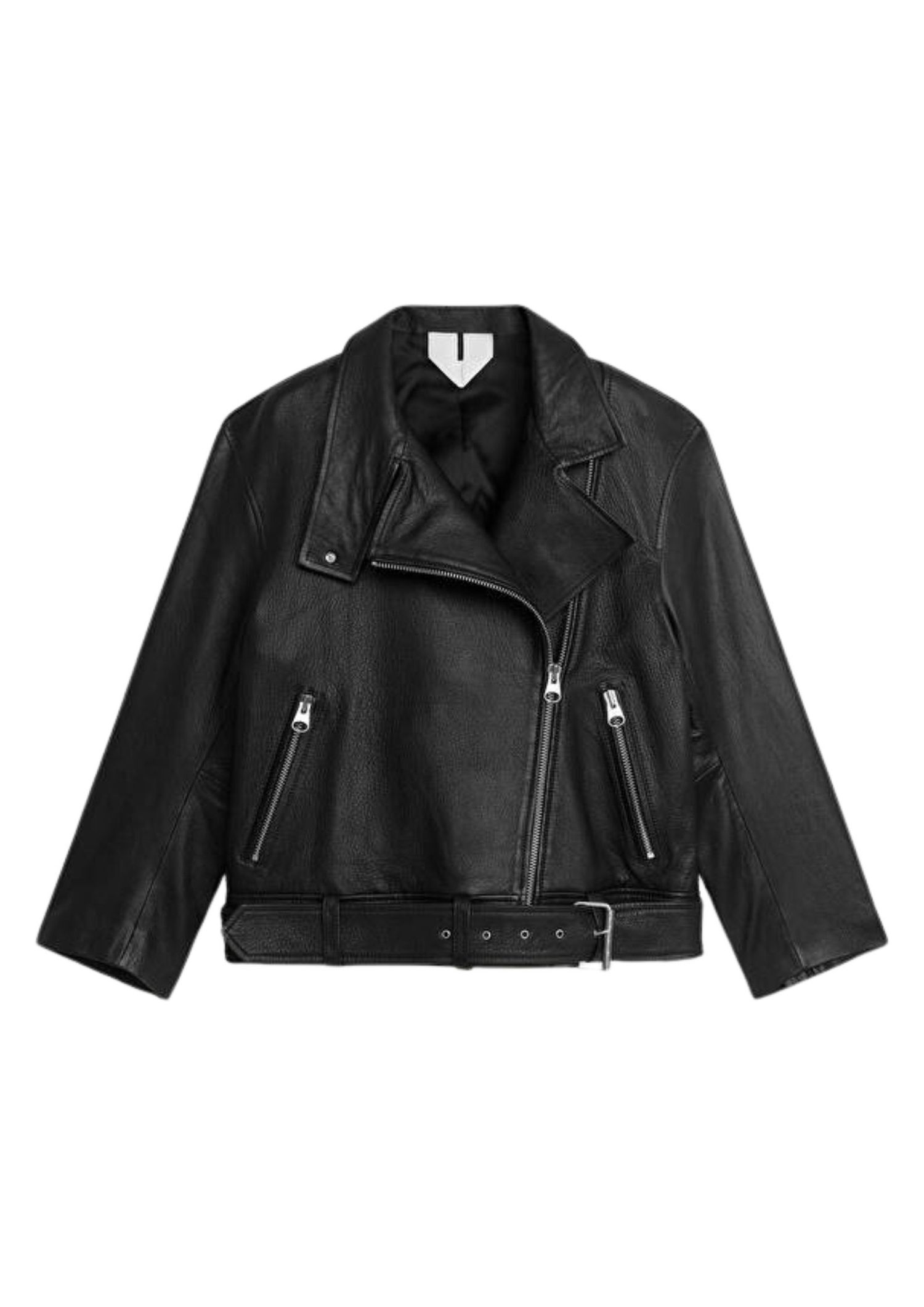 Arket has established itself as a great mid-market option for leather pieces, and its leather outerwear is no exception. Buttery soft, with a zip closure hidden by a button closure and a foldable stand-up collar – this piece embodies everything we love about a classic leather jacket.