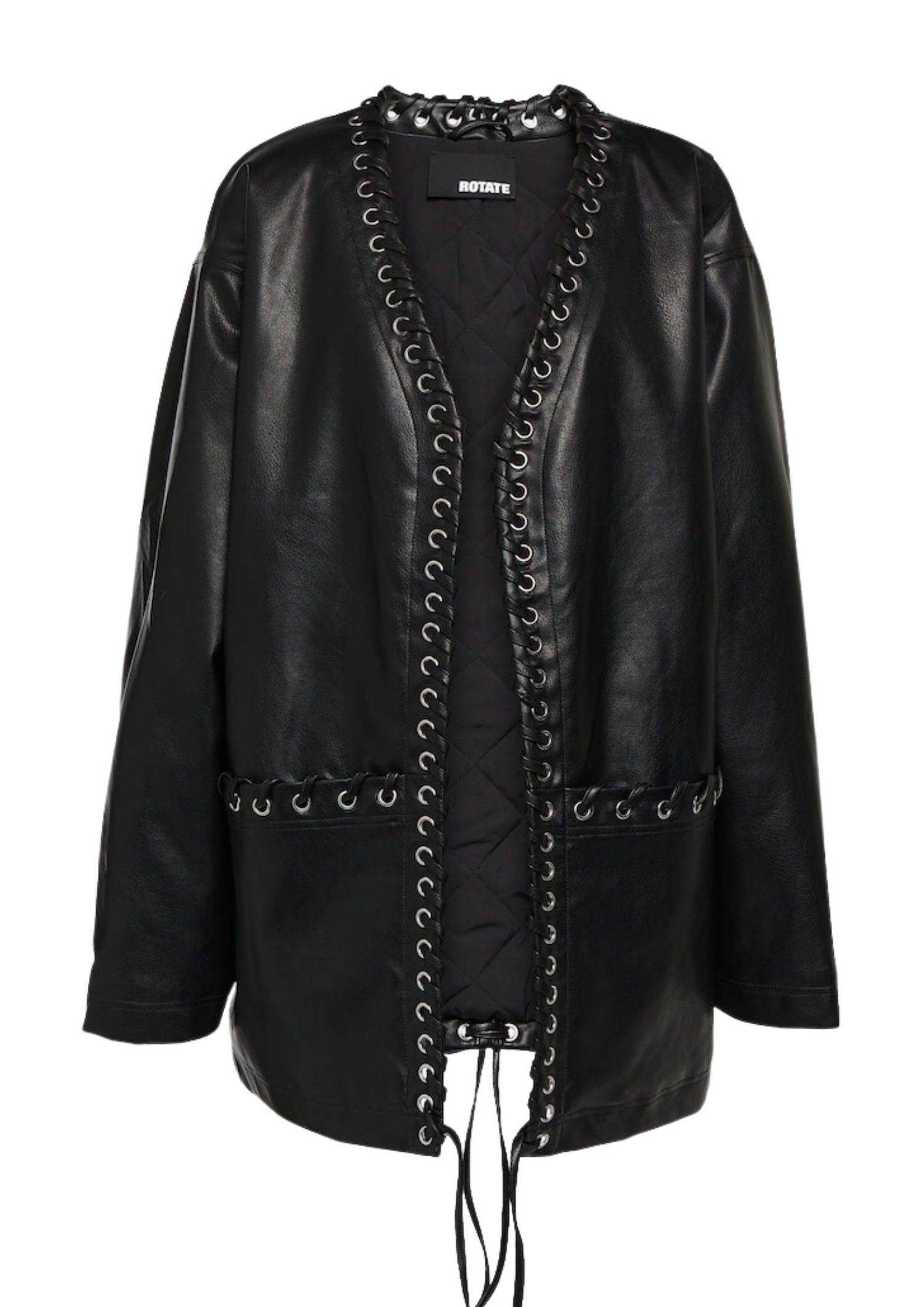 For a fun take on the classics, look no further than Rotate. Taking on the classic leather jacket, the Copenhagen cool-girl brand looks to sultry lace-up details, addictive eyelet embellishments to a simple long-line leather duster.