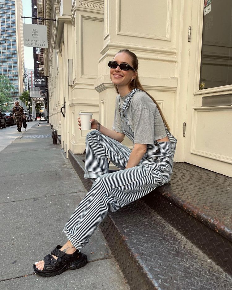 However, one pair in particular has had a chokehold on the local tastemakers. Loose-fitting with straight legs and classic buckles, Isabel Marant's striped overalls has been spotted on everyone from Elsa Hosk (who paired her pair with a white tube top, matching Chanel bag and sandals) to Pernille Teisbaek (who sported a casual getup consisting of a grey T-shirt and black chunky sandals.)